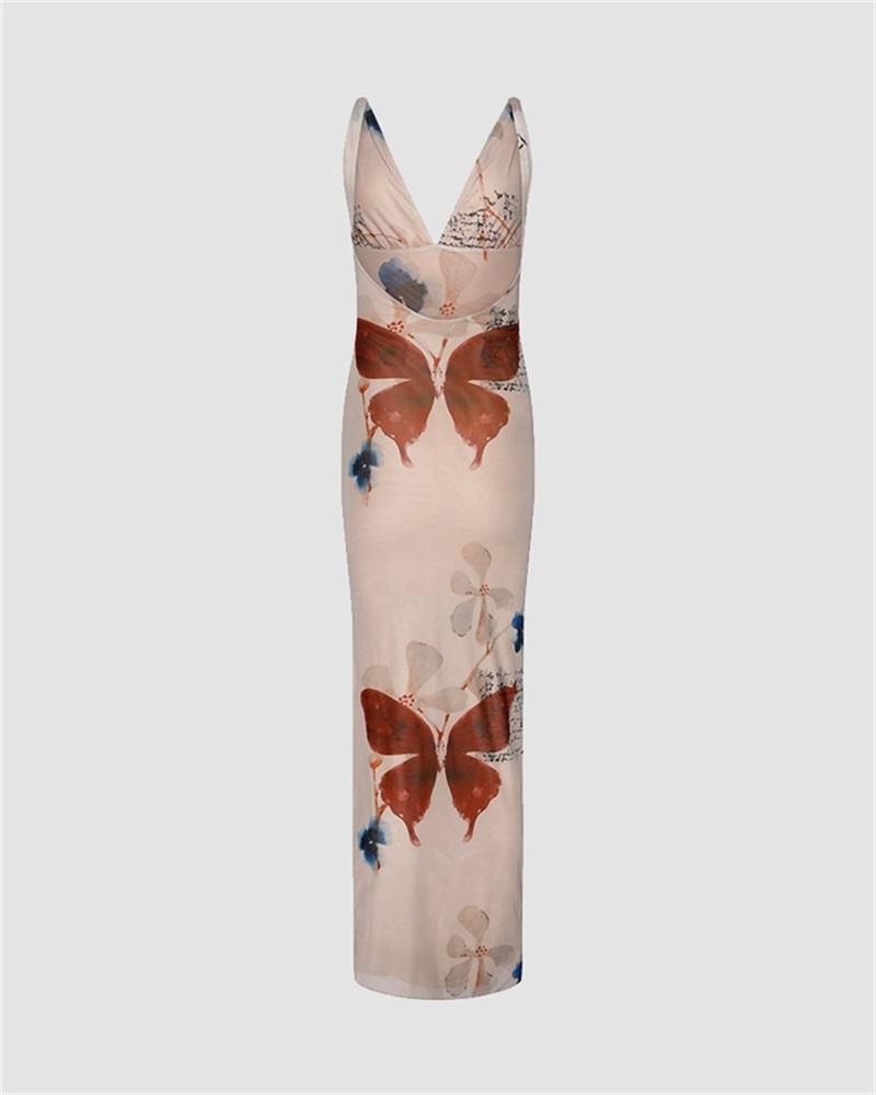 Details: Maxi dress with deep-V neck design and floral print details