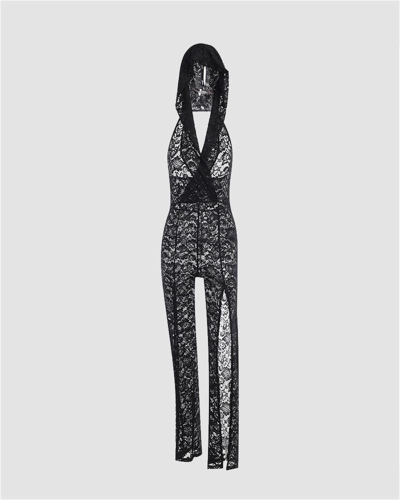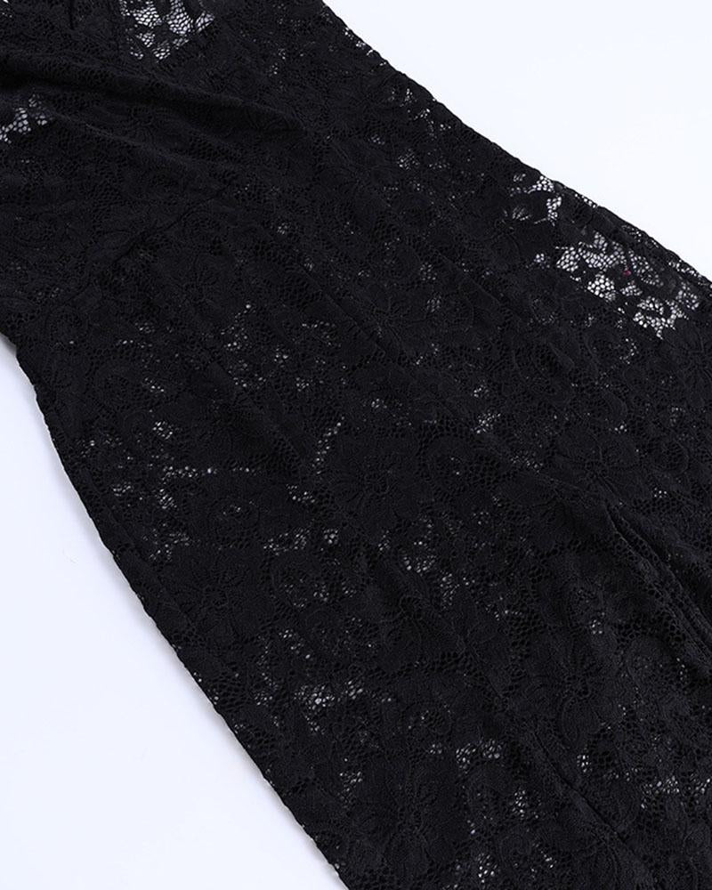 Details: Deep V slit maxi dress with lace design