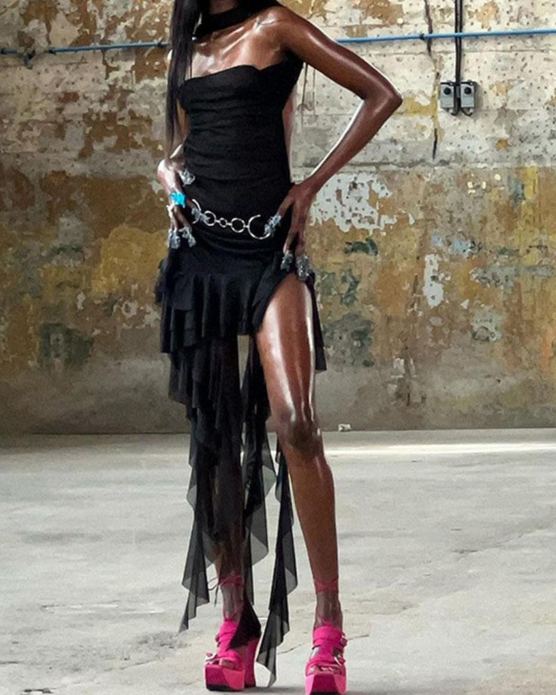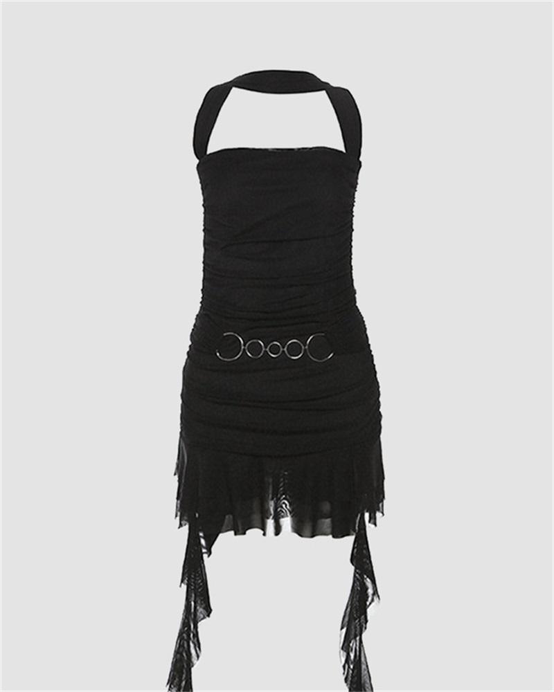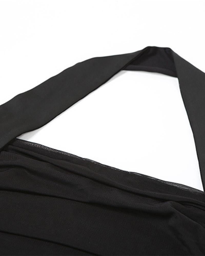 Details: Halter dress with patchwork designDress Length: ShortSleeve Length: SleevelessMaterials: 95% Polyester + 5% Spandex