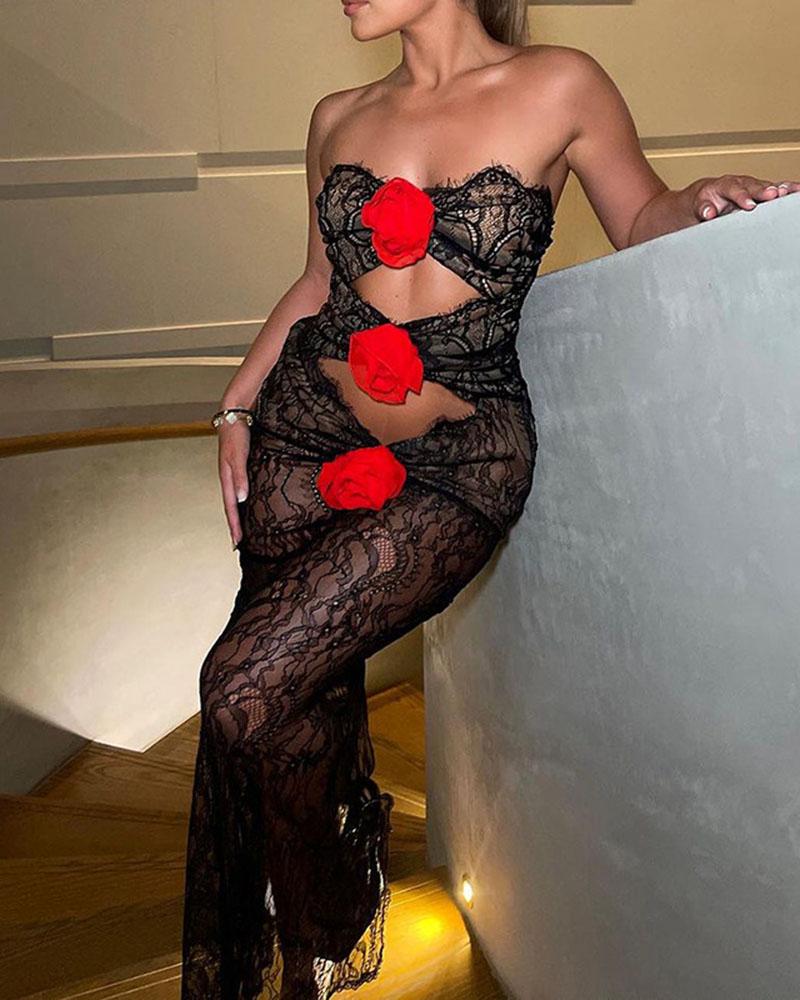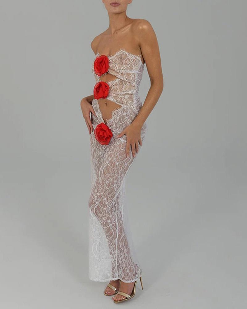 Details: Rosebud maxi dress with cut-out design