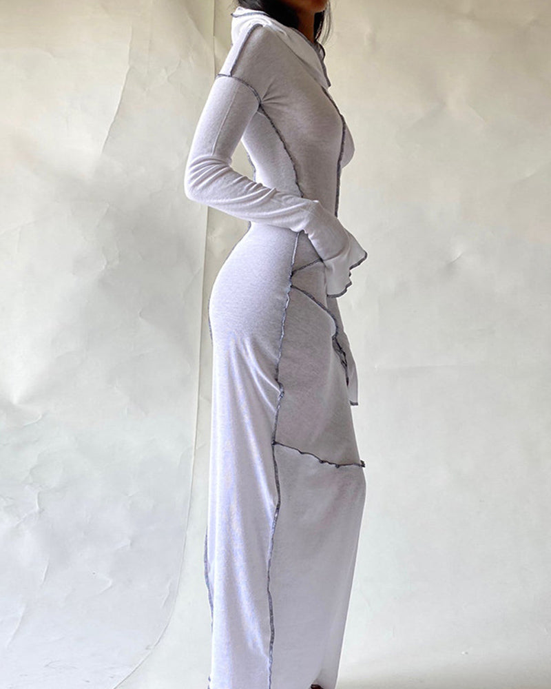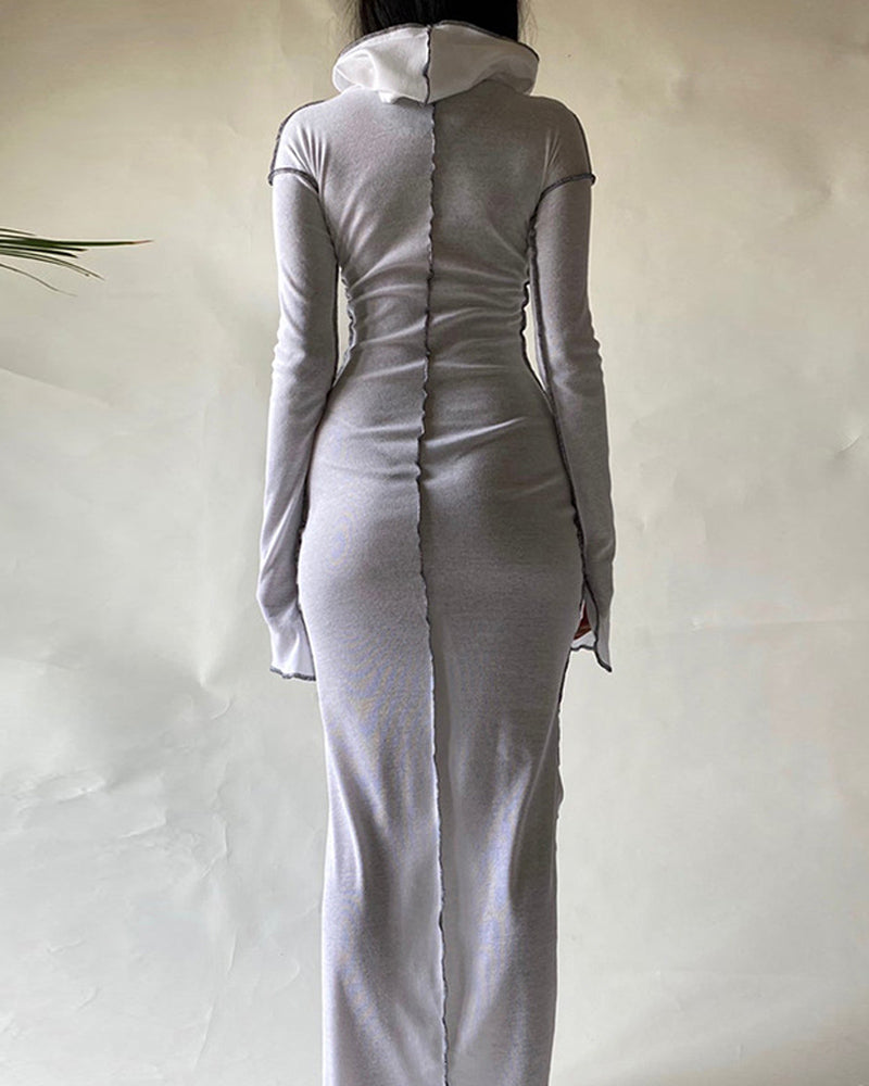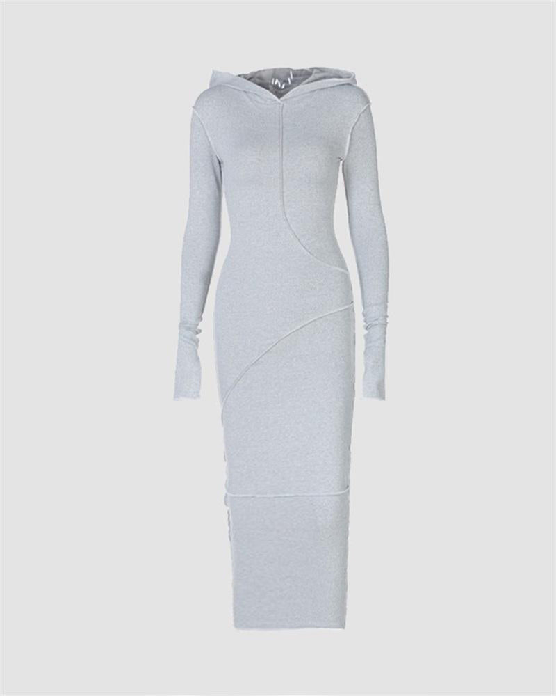Details: Maxi dress with splice pleated design and hood details