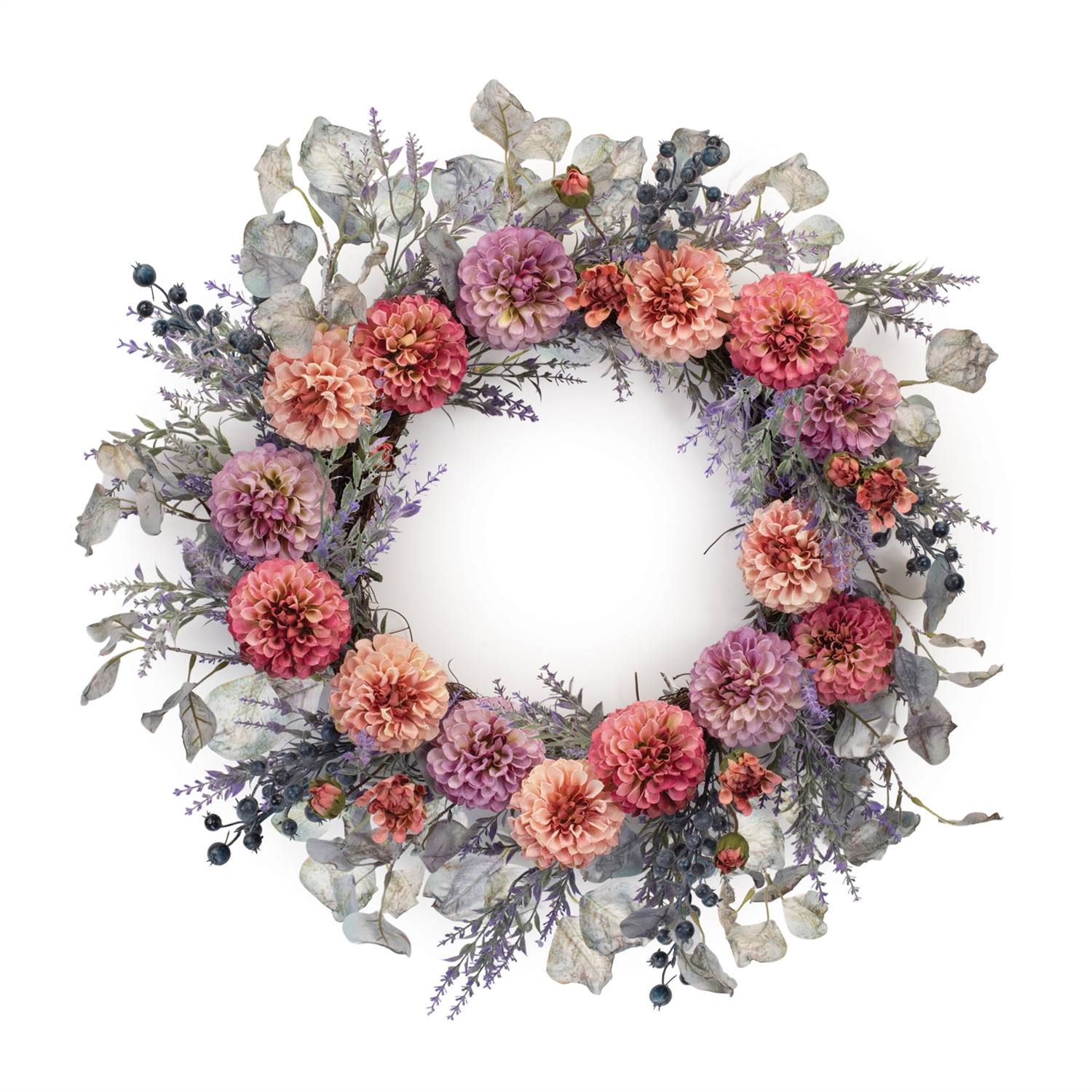 Mixed Zinnia Wreath 24”D Polyester/Twig