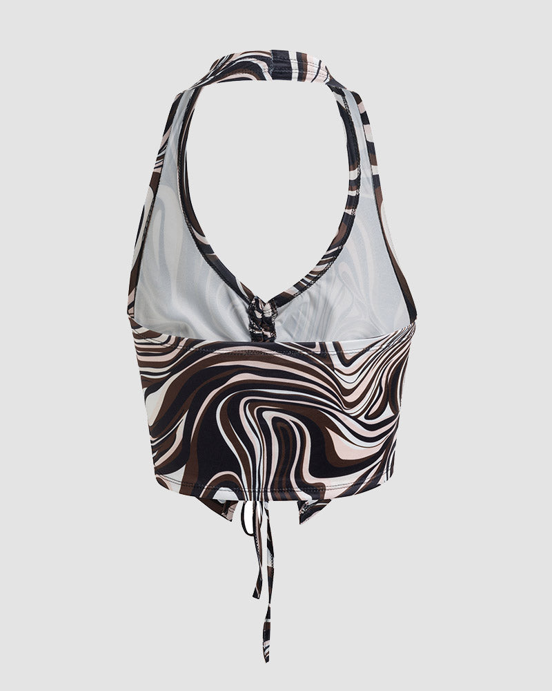 Details: Halter top with abstract ripples print