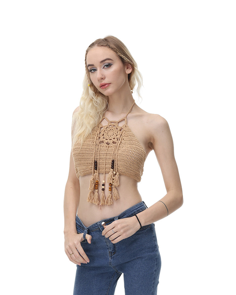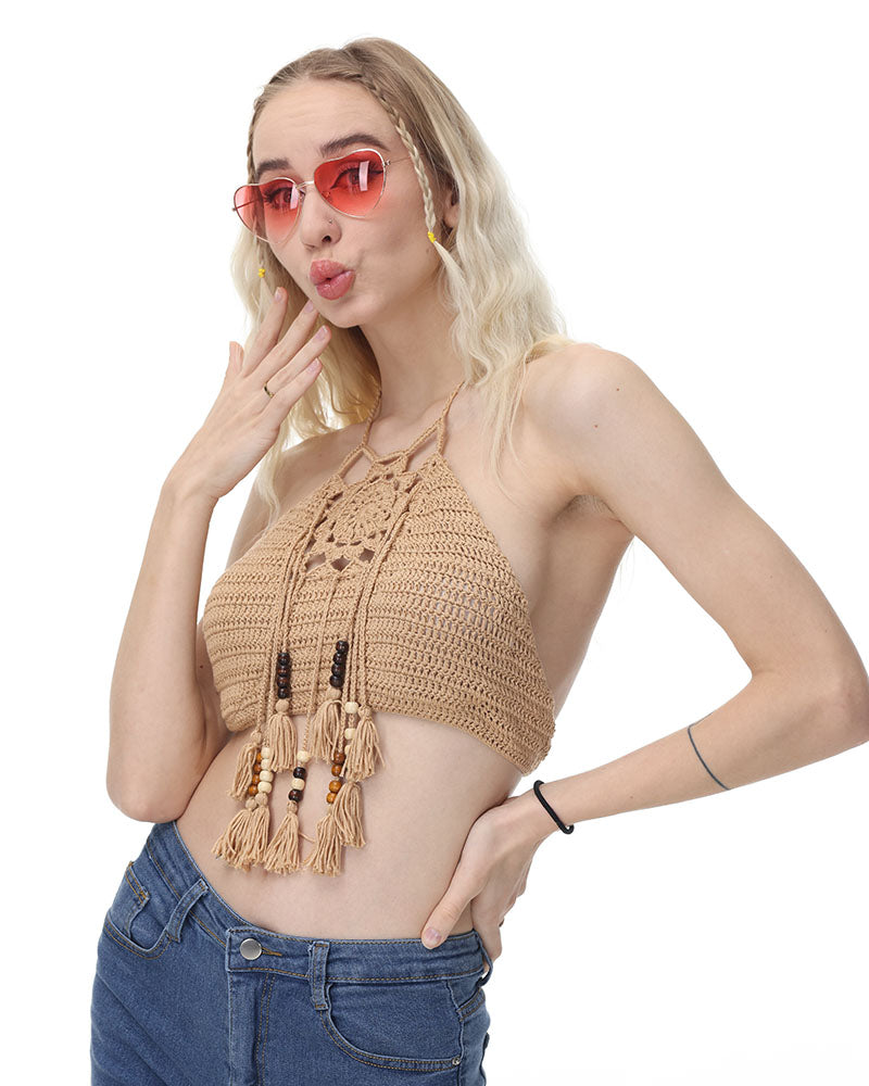 Details: Crochet halter top with removable bra pads and beads details