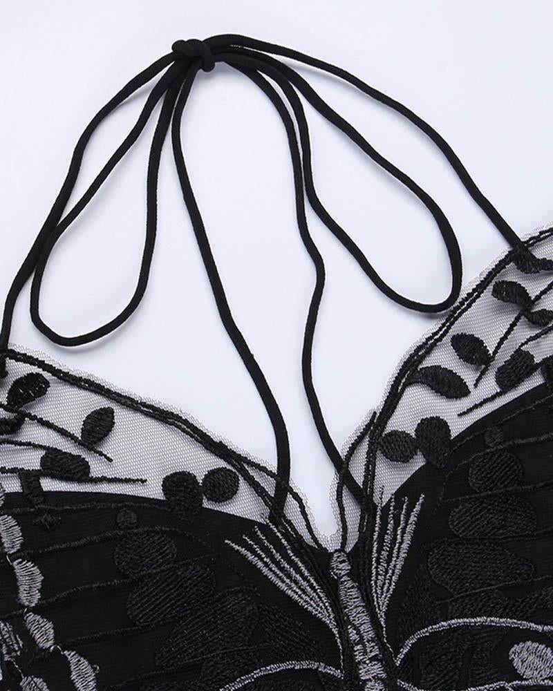 Details: Halter top with butterfly design