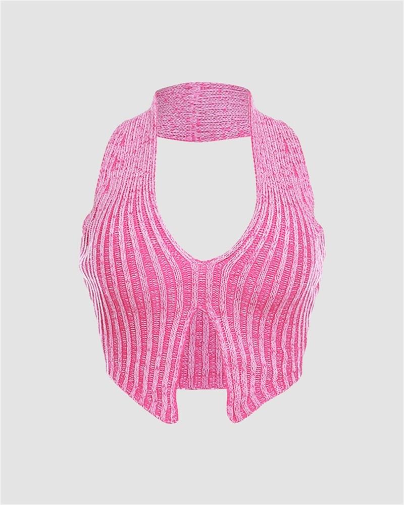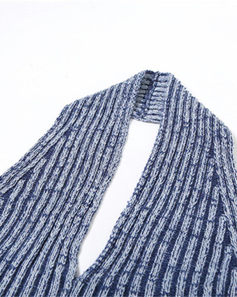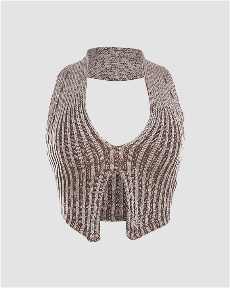 Details: Ribbed halter top with stripes design