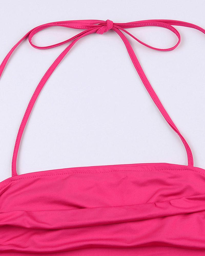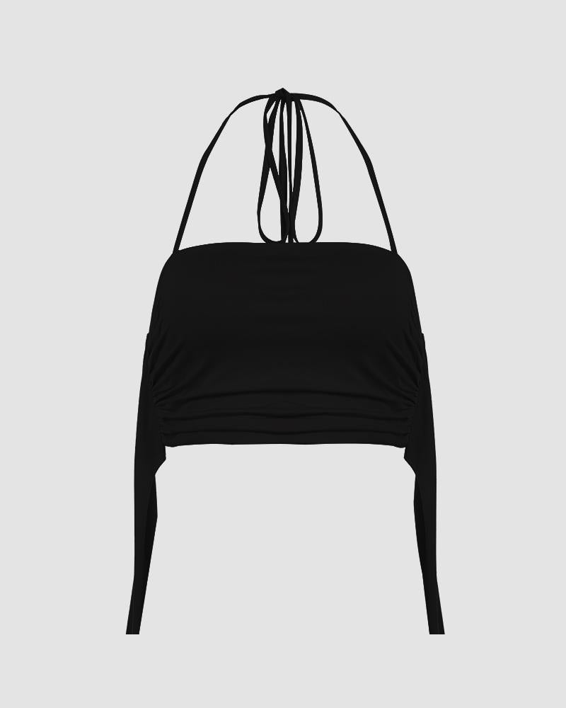 Details: Halter top with side ruffle design