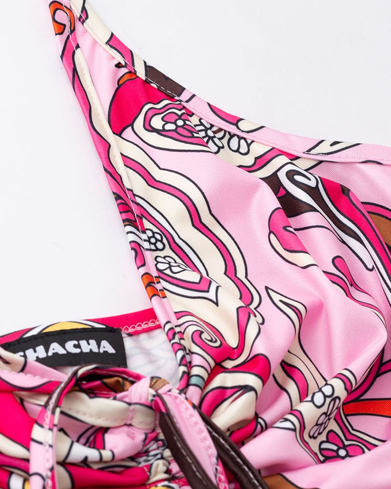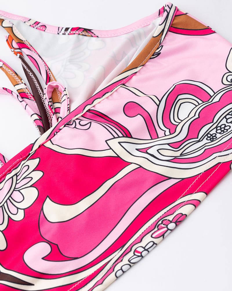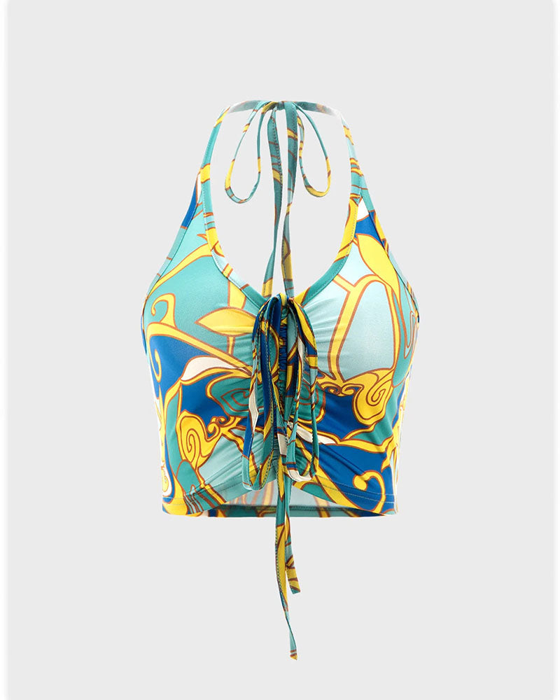 Details: Halter top with abstract print