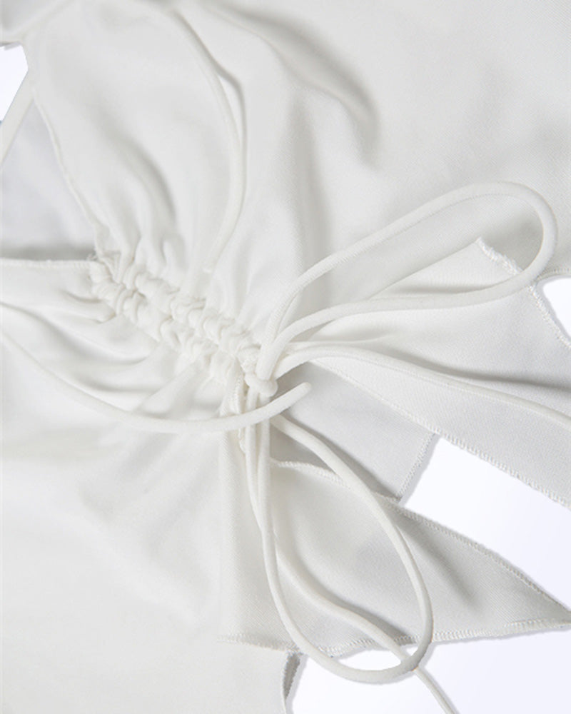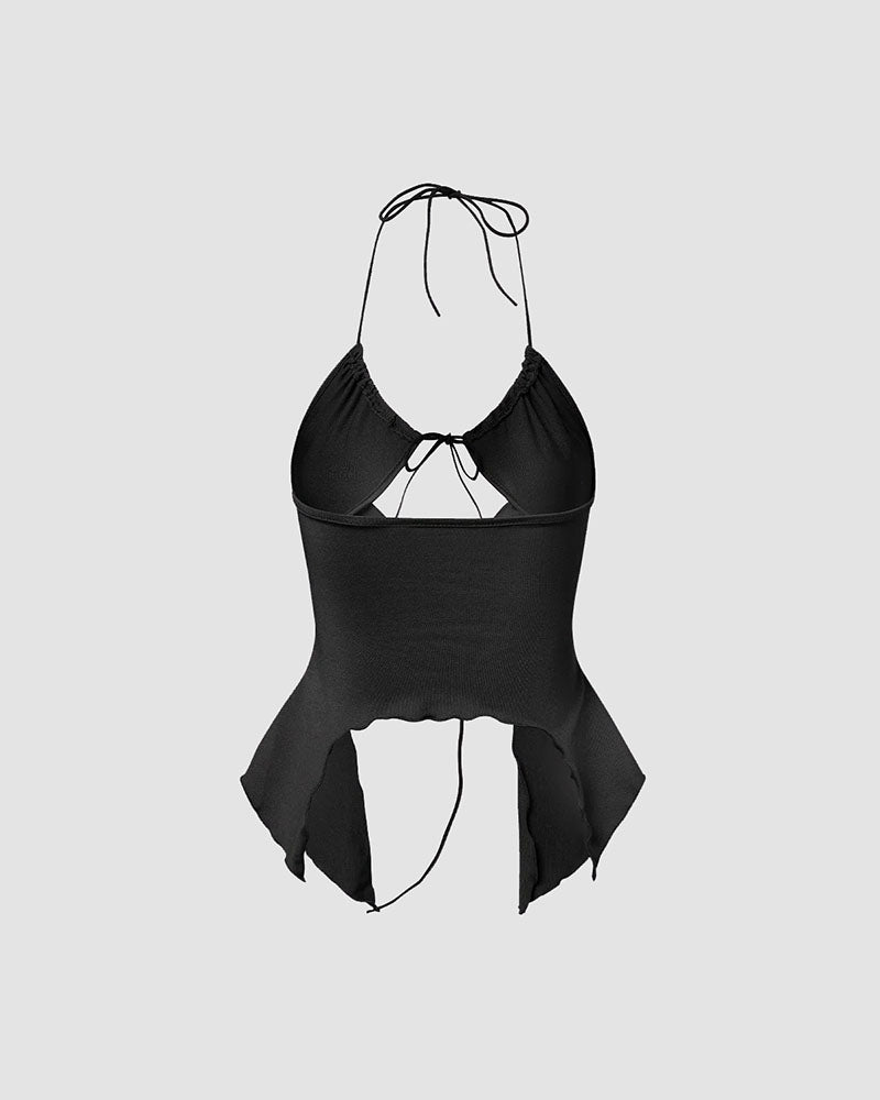 Details: Halter top with chest ribbon details and unique waist-line design