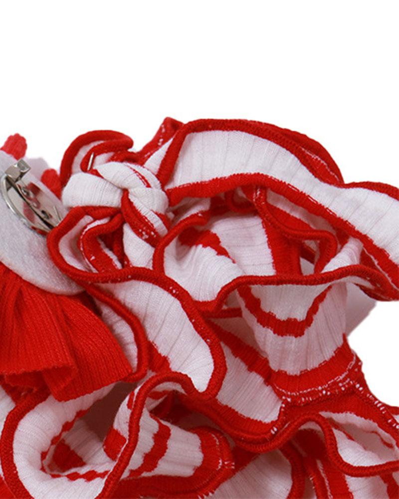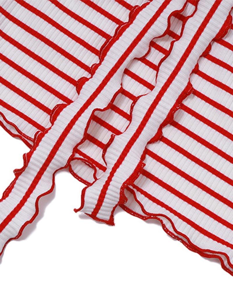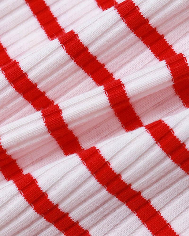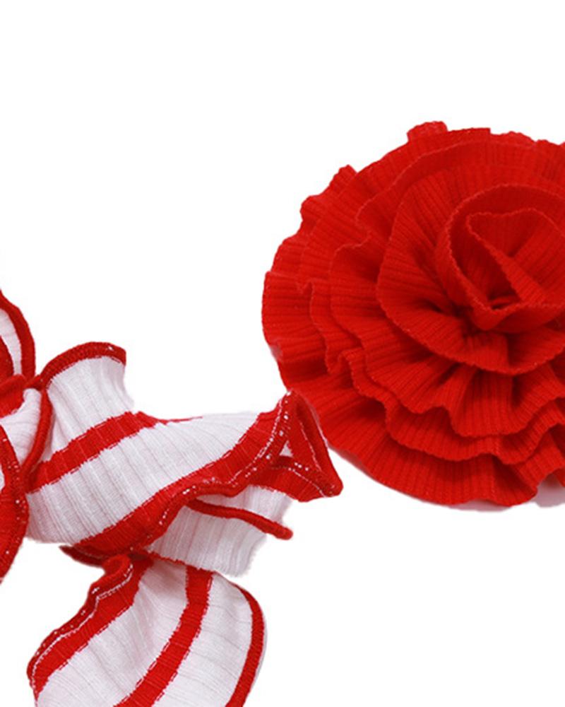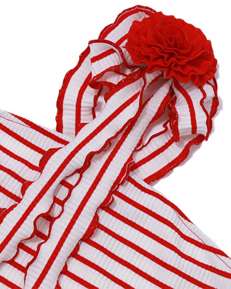 Details: Tube top with stripes pattern and red rose design