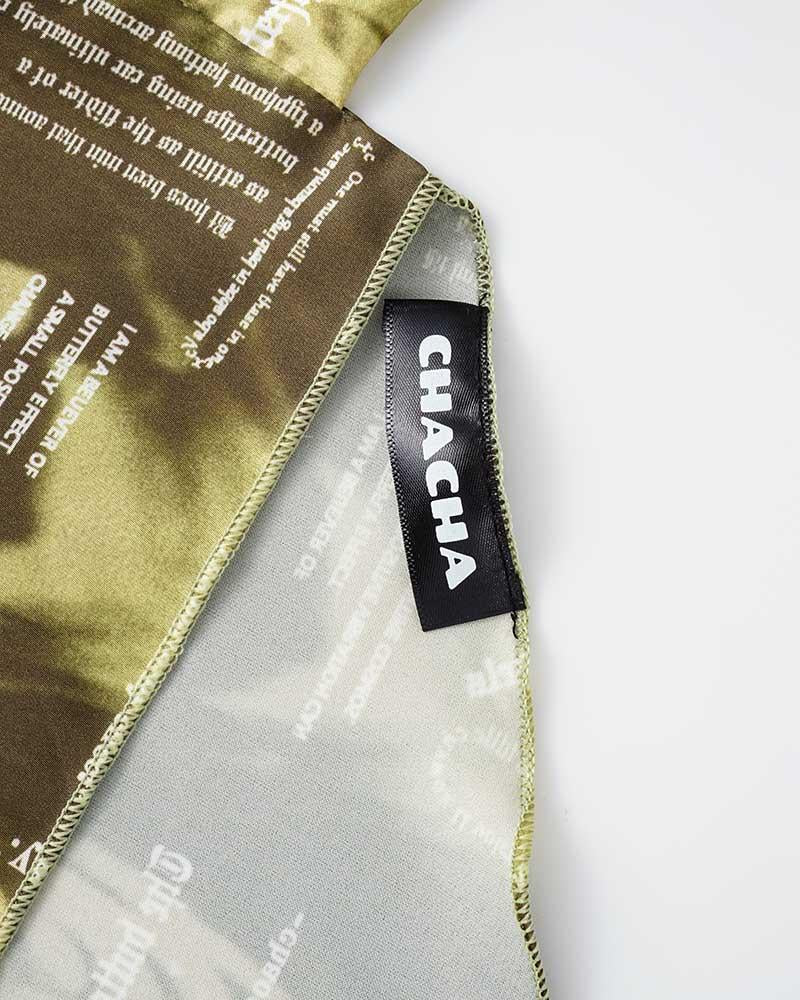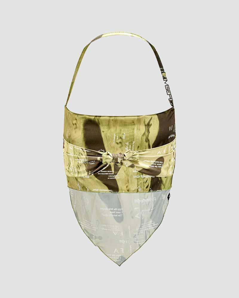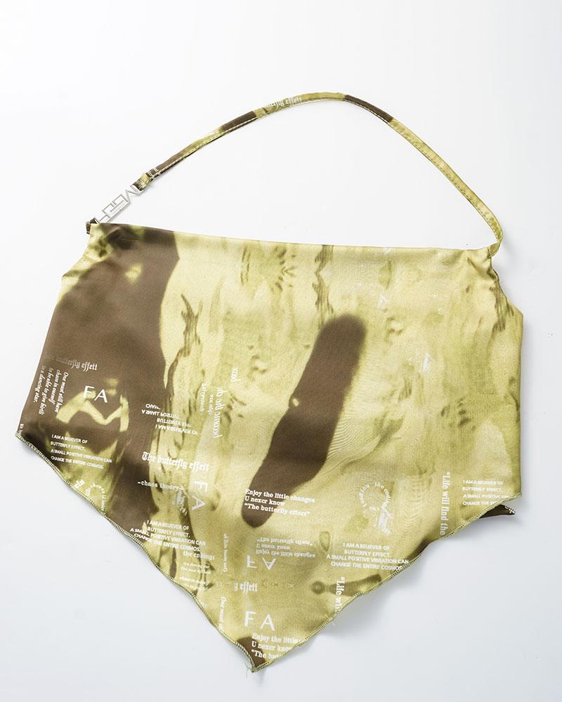 Details: Handkerchief halter top with graphical pattern design