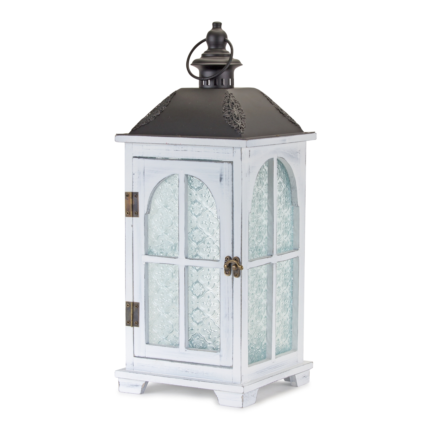 Add a warm and inviting glow to your home with this stunning set of White Wood Lanterns. Featuring intricate frosted glass panels and a natural wood finish, these lanterns effortlessly complement modern farmhouse, rustic, and country-style decor. The sturdy metal tops ensure lasting durability, making them a timeless accent for both everyday and seasonal styling. Whether placed on a mantel, tabletop, or entryway, simply add a real wax or LED candle to create a cozy ambiance. Sold in a set of two assorted sizes to create a balanced display in your home.
