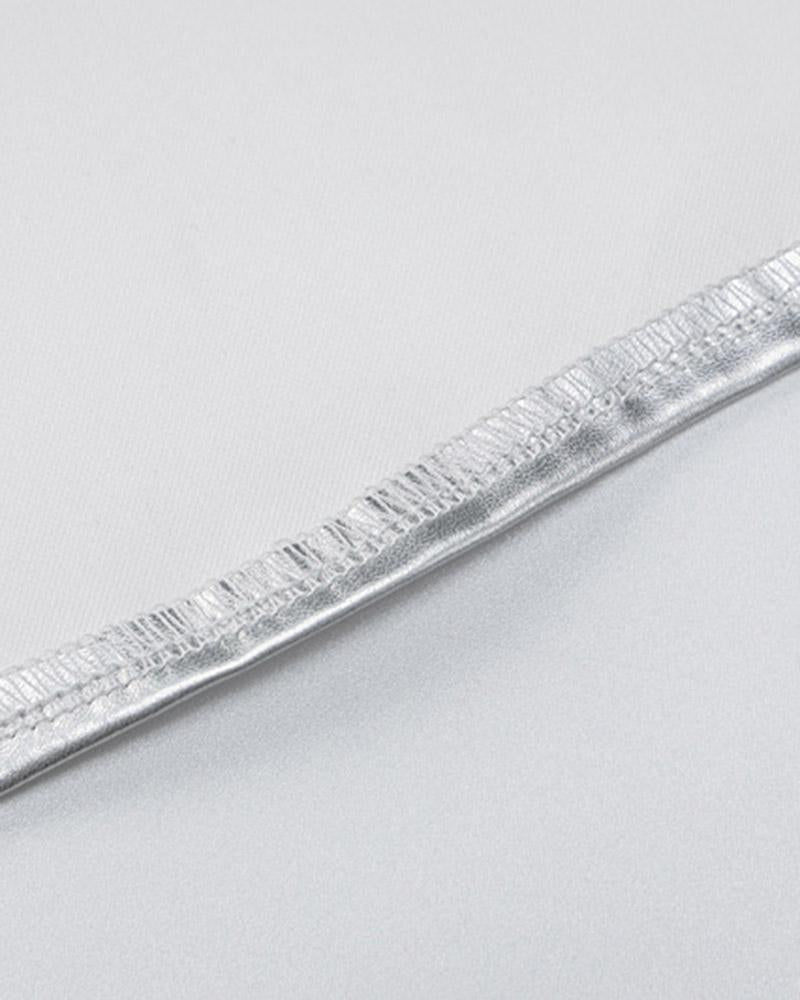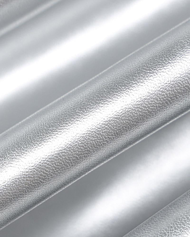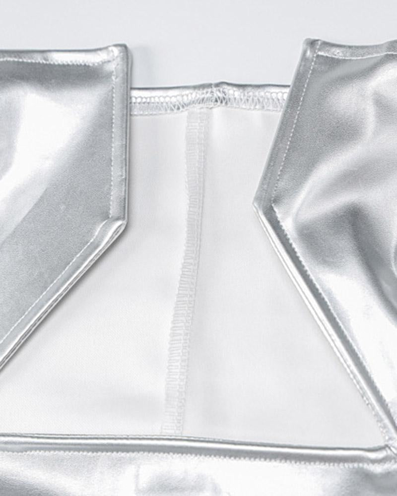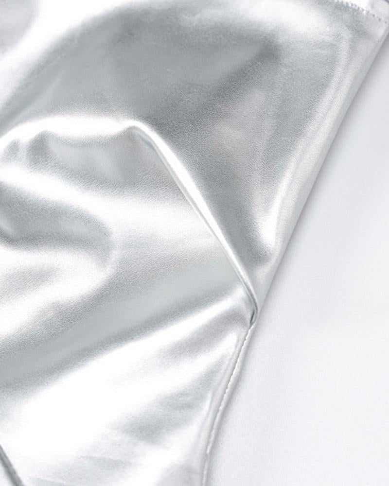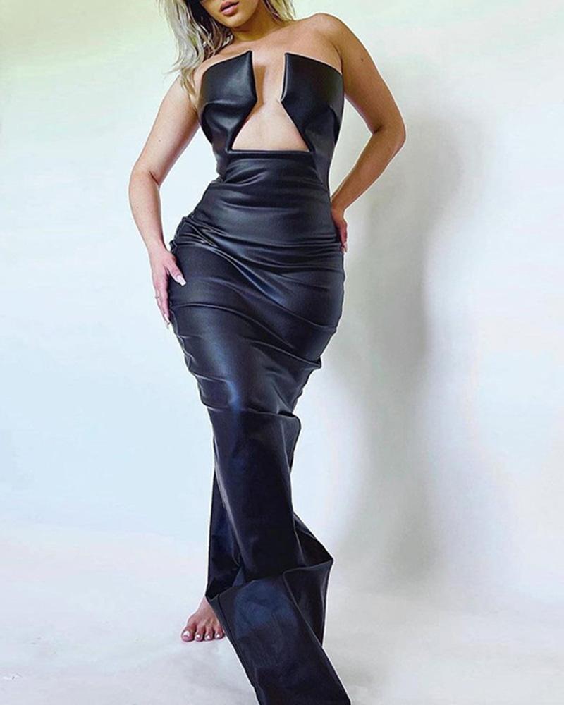 Details: PU maxi dress with reflective designDress Length: LongSleeve Length: SleevelessMaterials: 55% PU + 45% Spandex