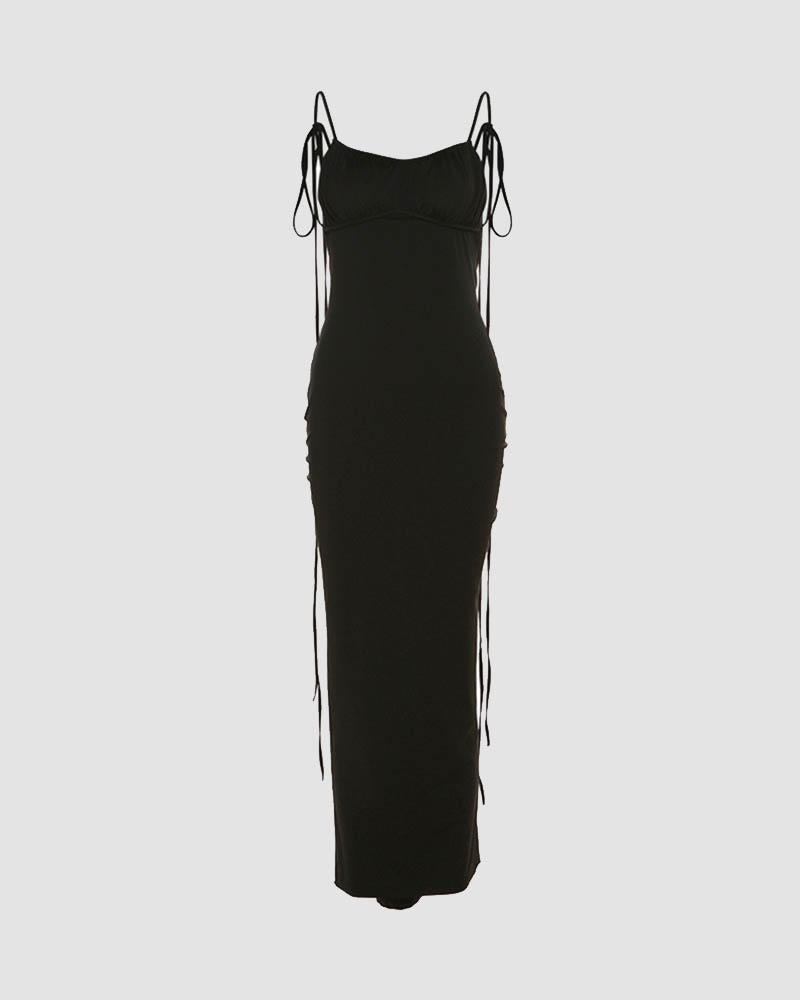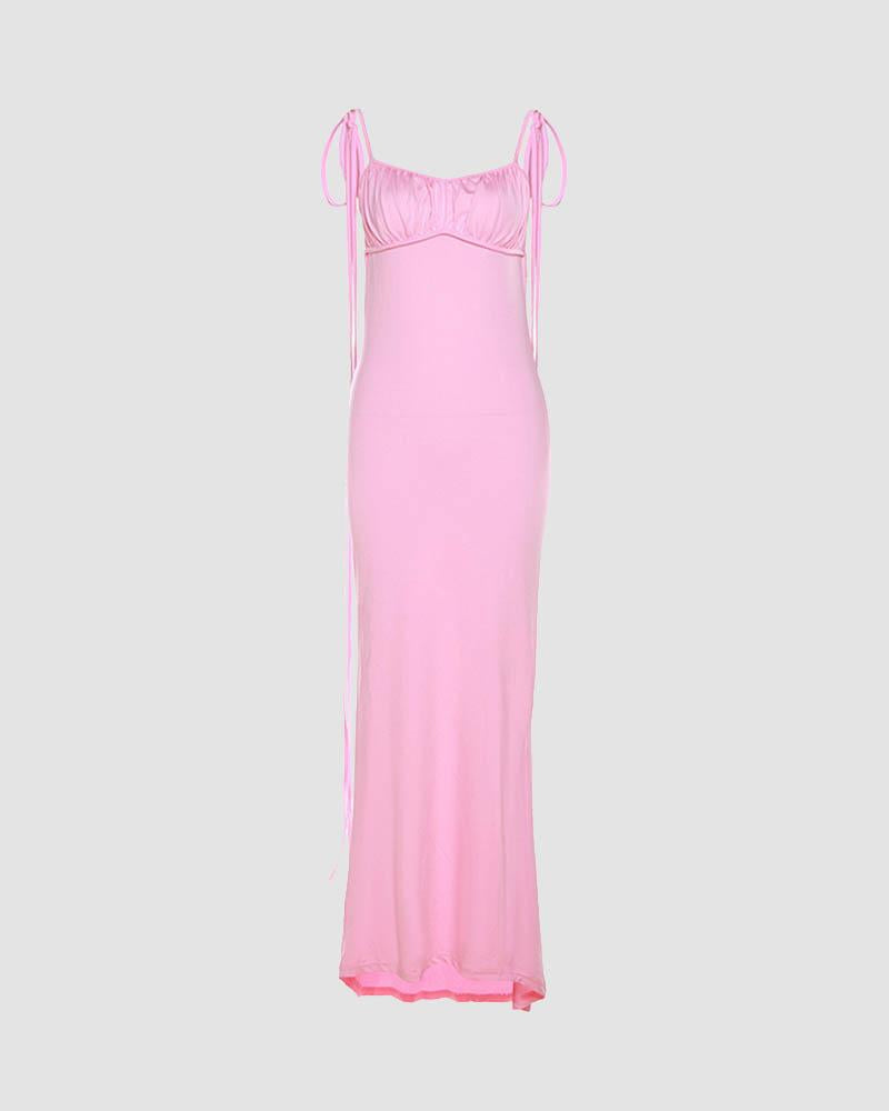 Details: Maxi dress with backless design