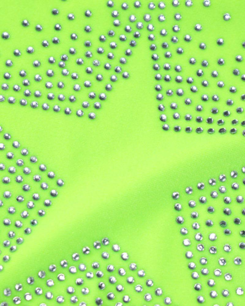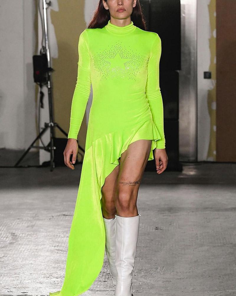 Details: Dress with front gemstone star details and asymmetrical design