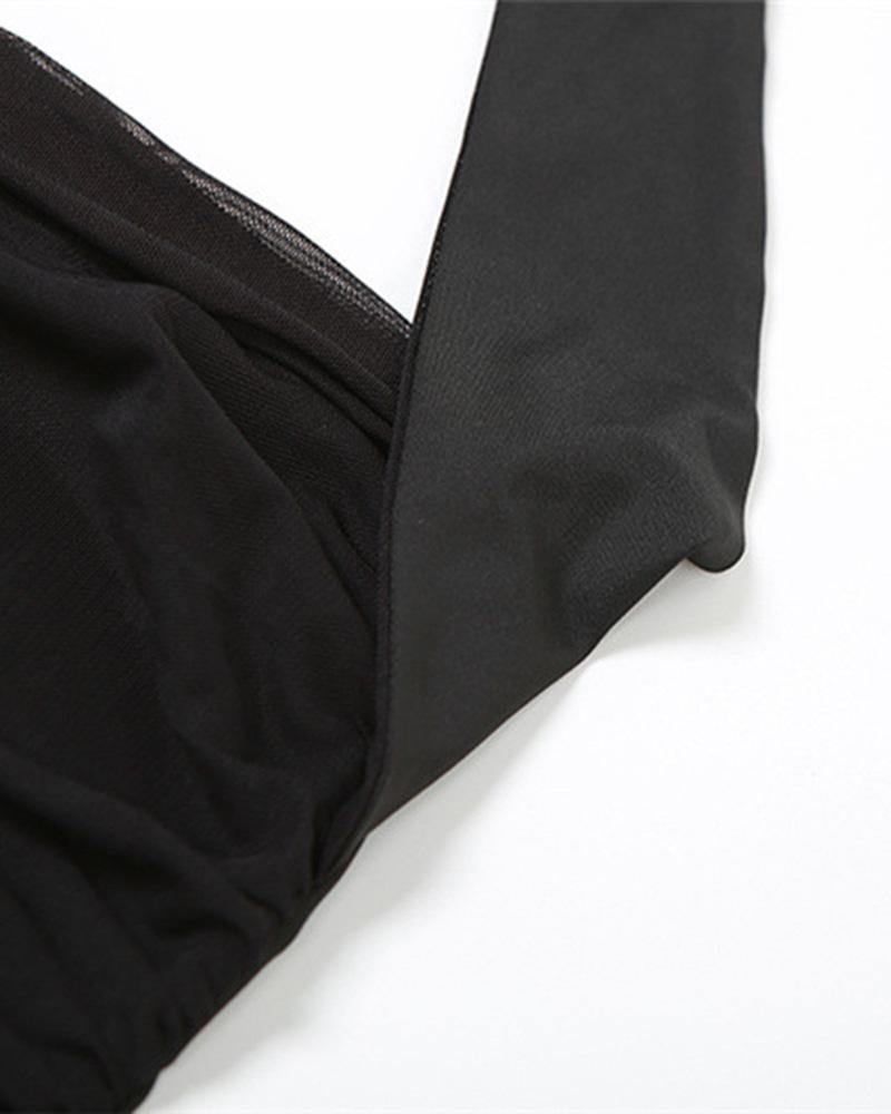 Details: Halter dress with patchwork designDress Length: ShortSleeve Length: SleevelessMaterials: 95% Polyester + 5% Spandex