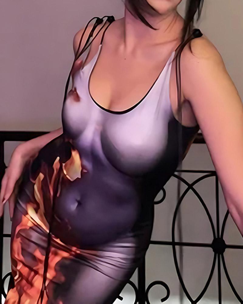 Details: Maxi dress with body and flames graphical design