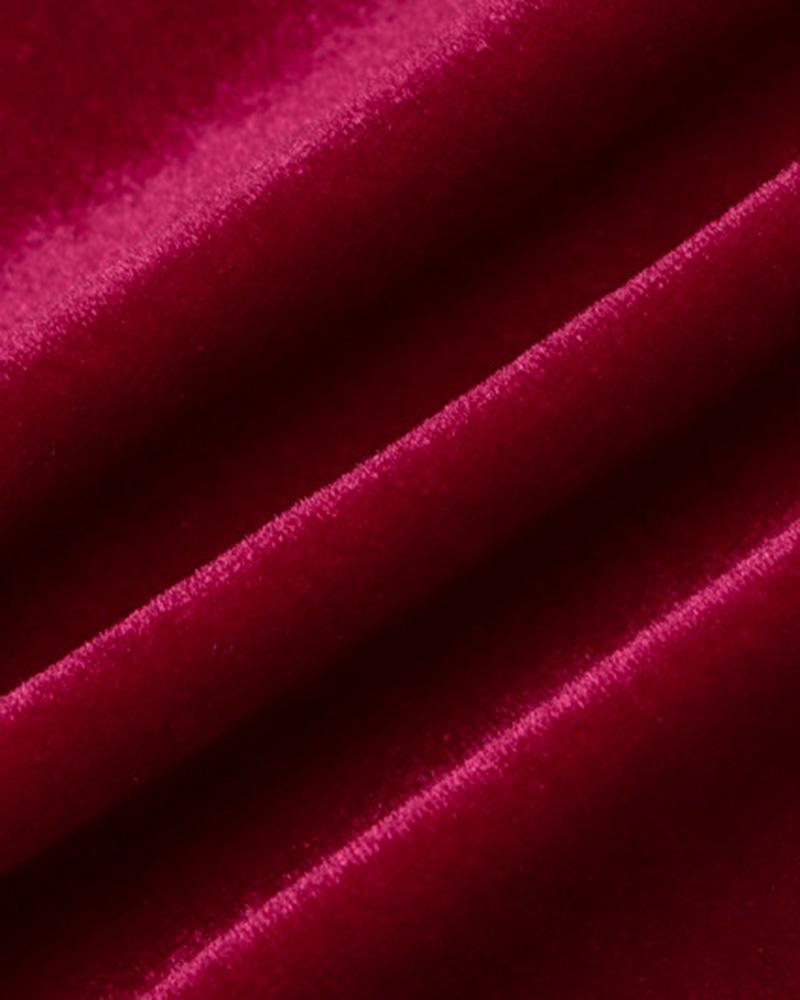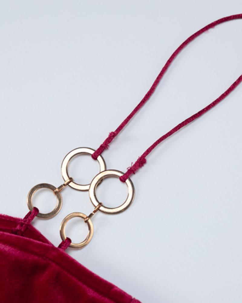 Details: Velvet party dress with side slit and rings design
