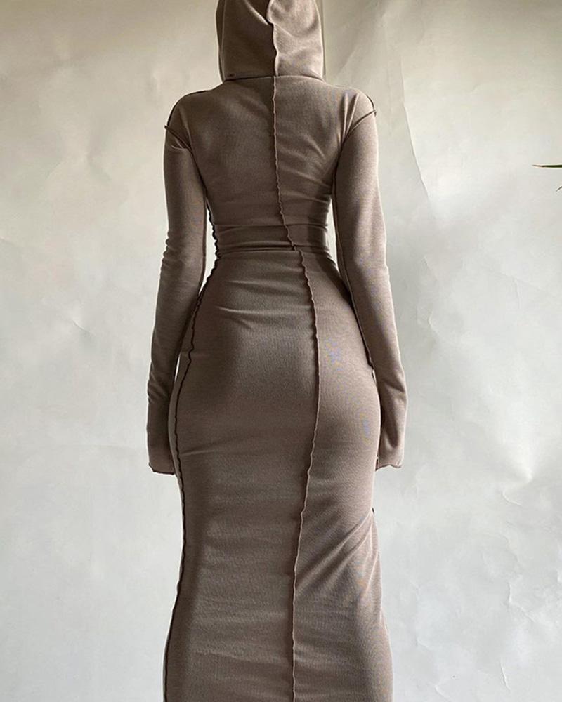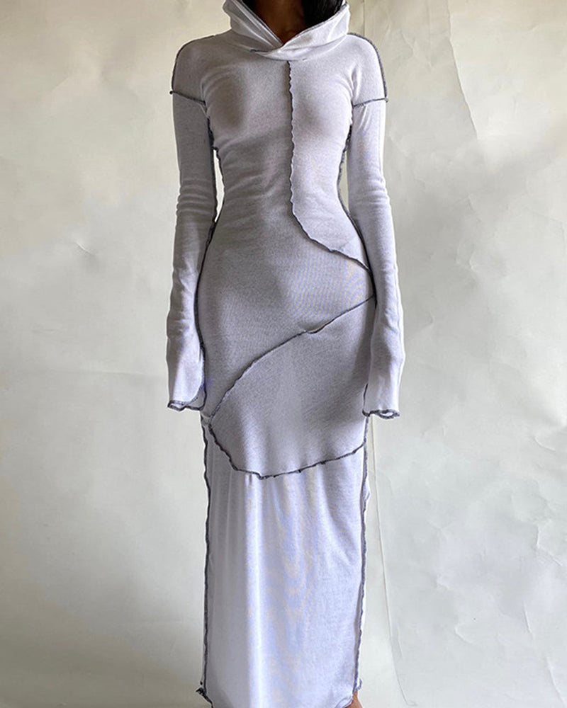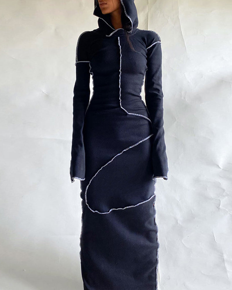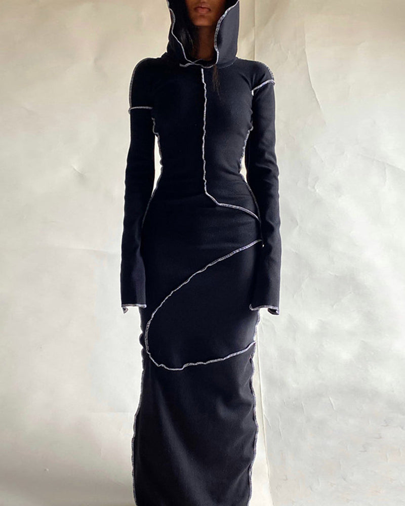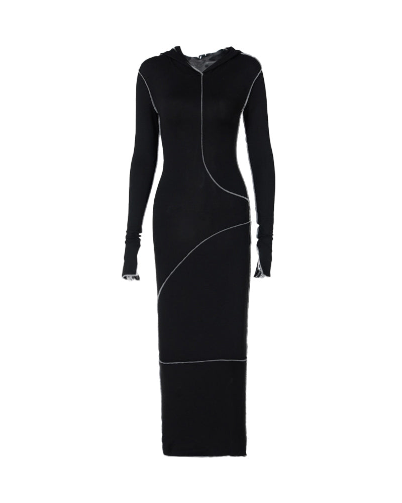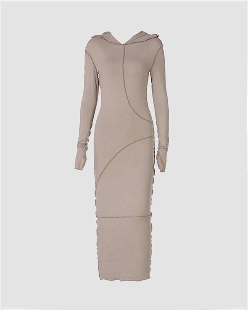 Details: Maxi dress with splice pleated design and hood details