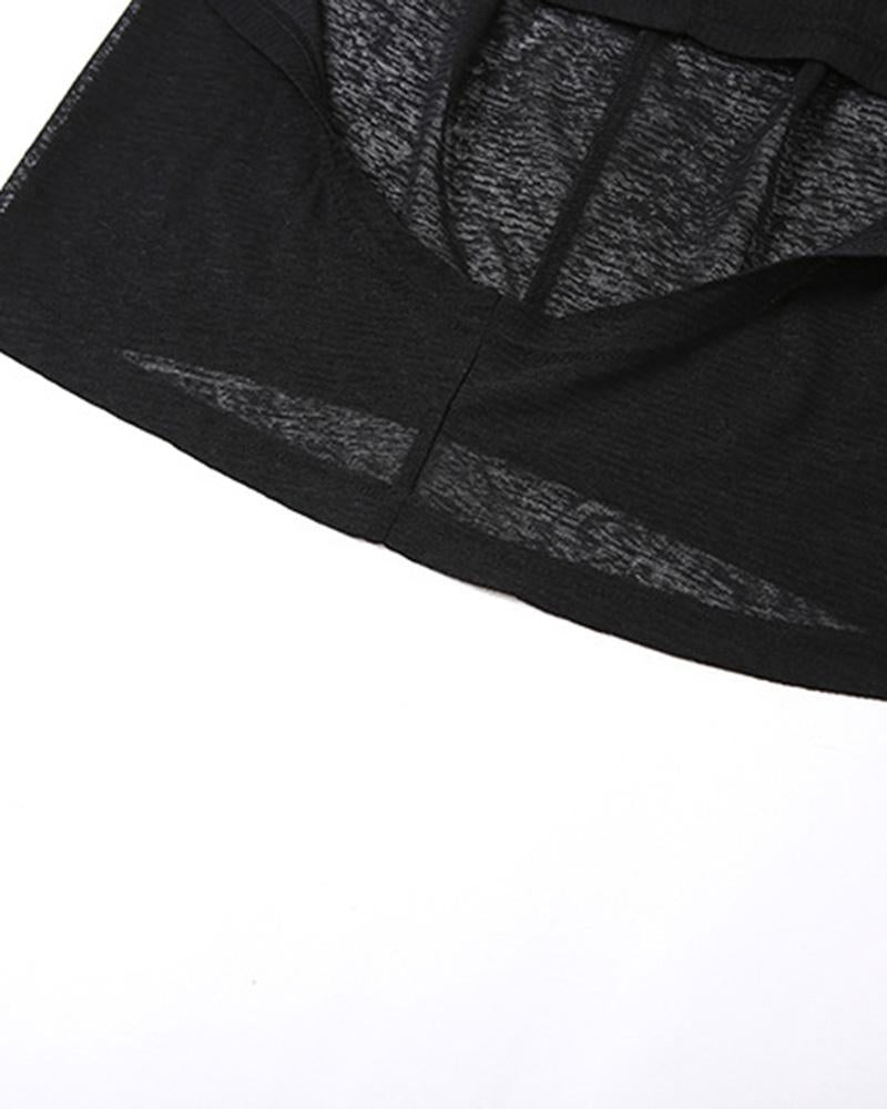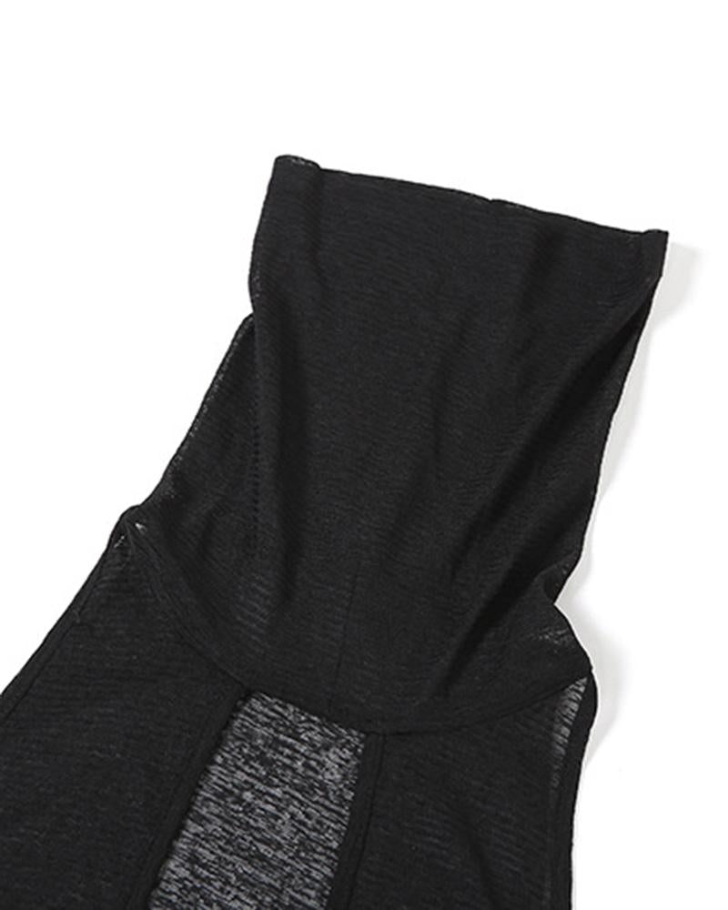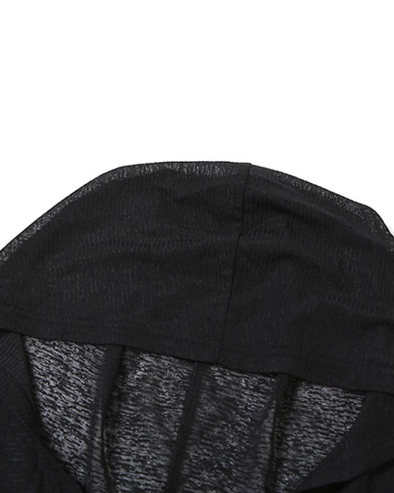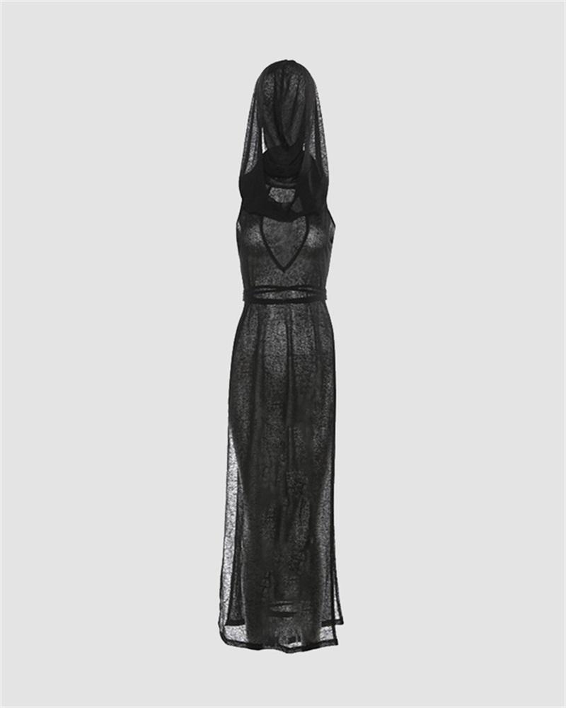 Details: Maxi dress with hood design and see-through details