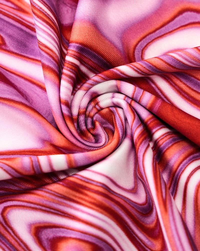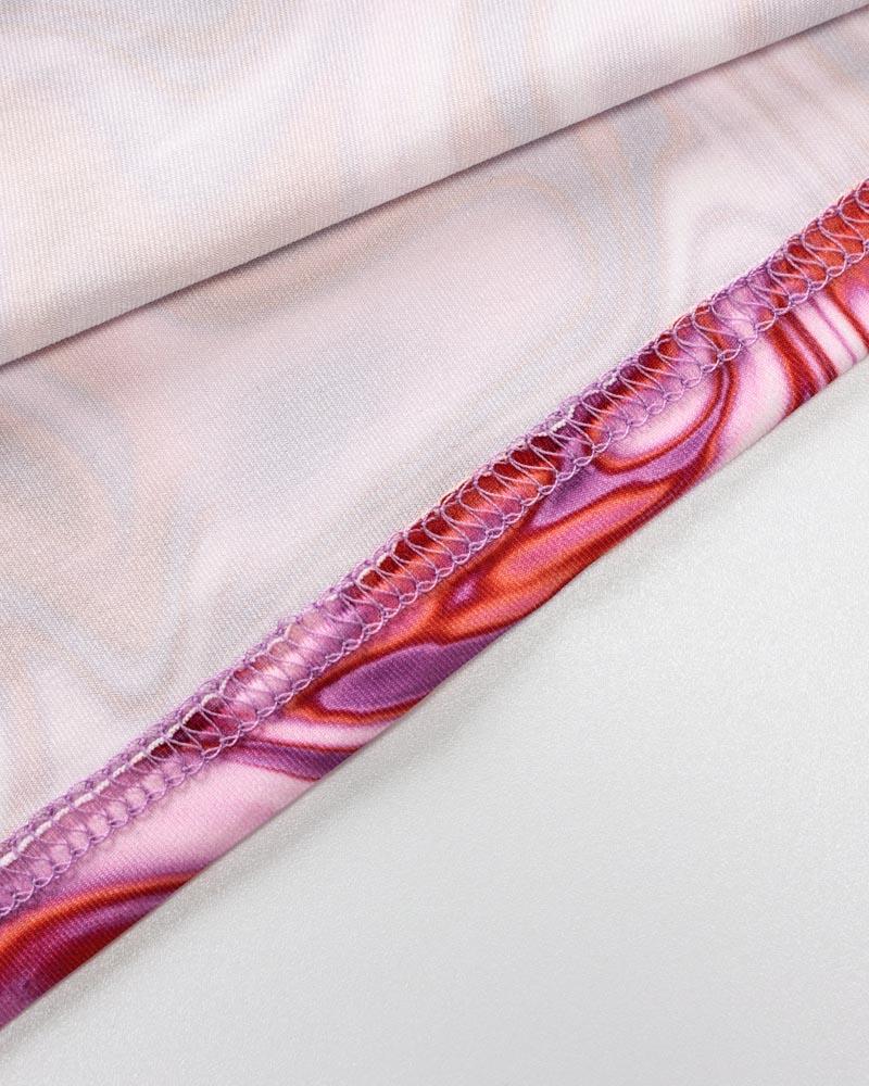 Details: Long halter dress with watermarbled print and front cut-out details