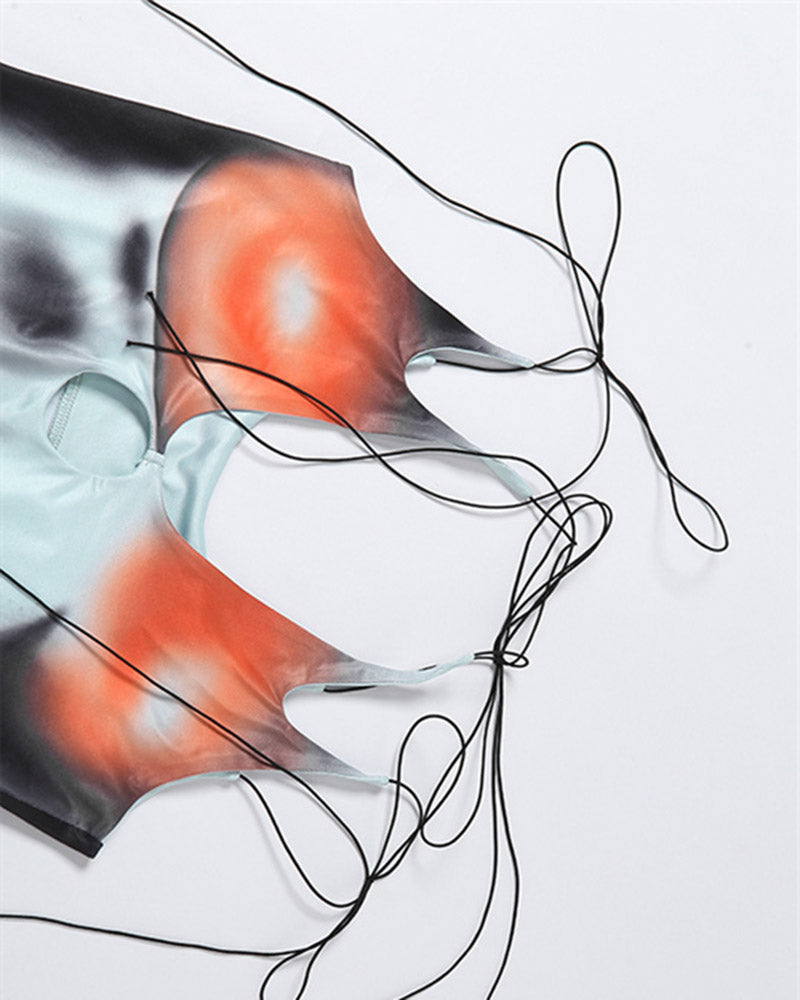 Details: Short dress with front cut-out and straps design, with x-ray vision print