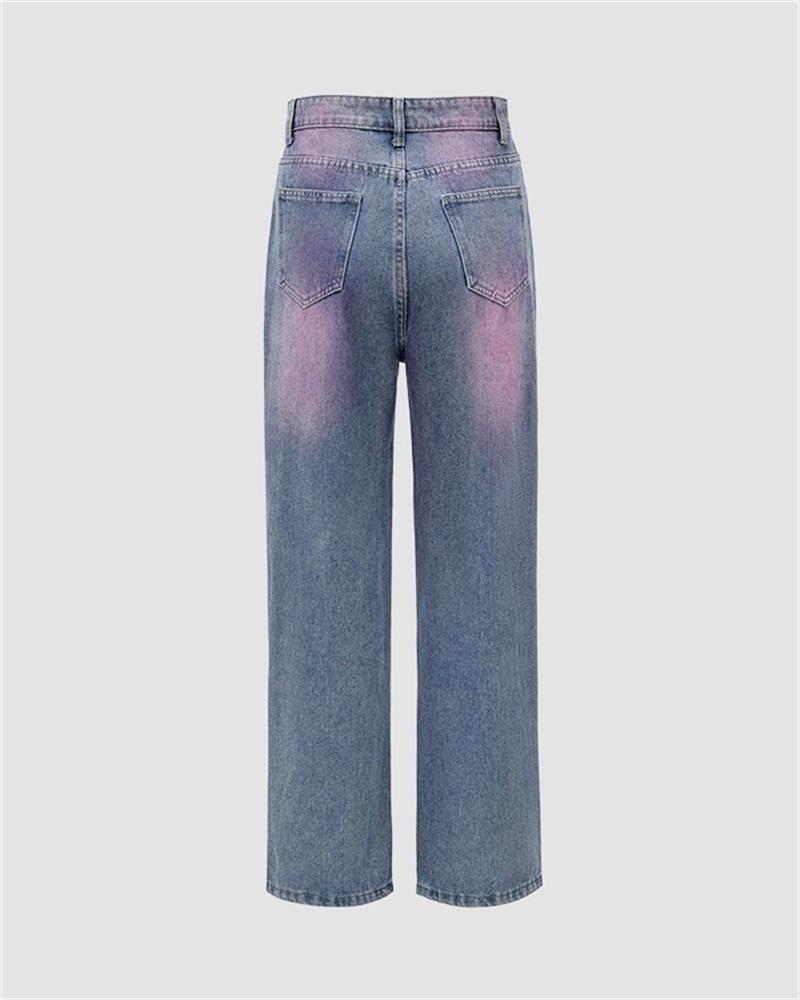 Details: Oversized jeans with pinky print design
