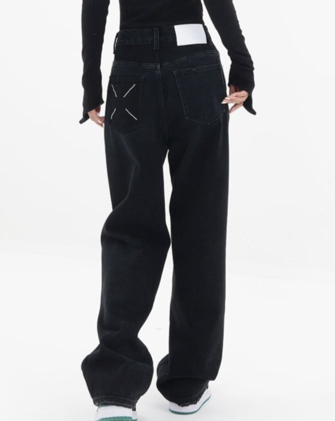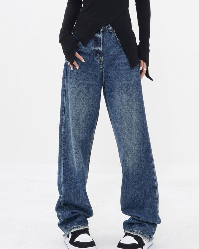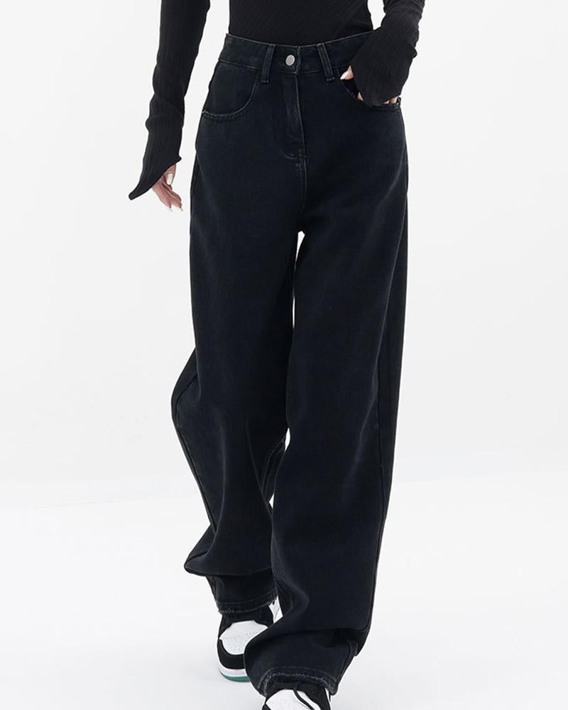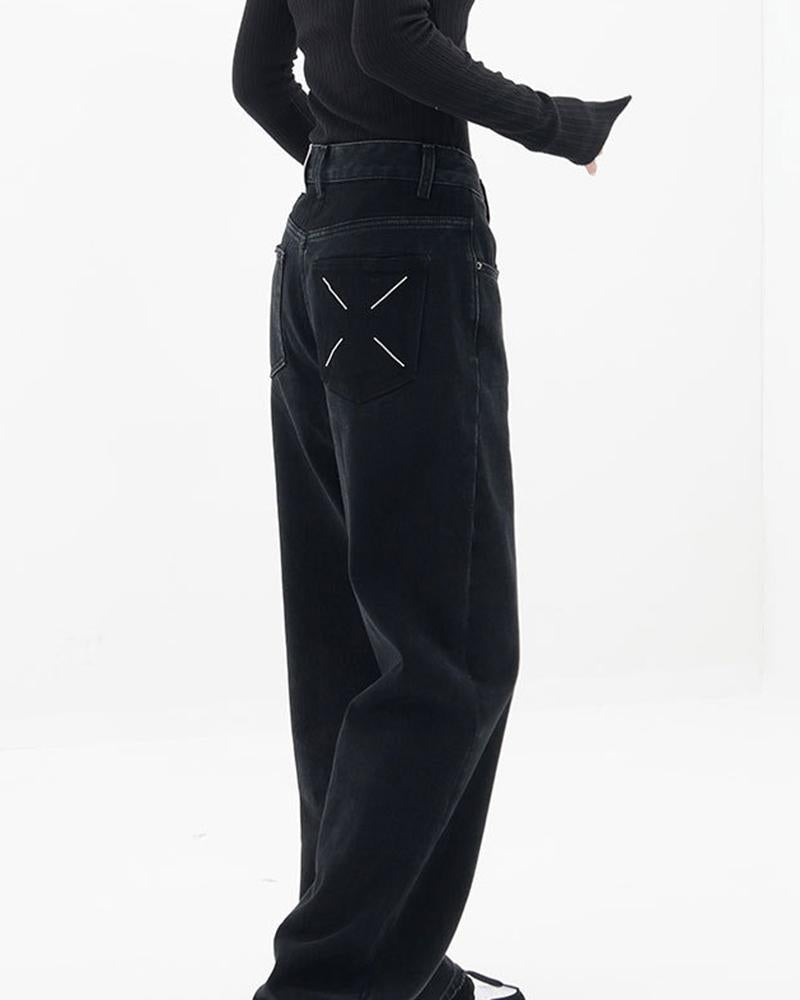 Details: Baggy jeans with back pockets designBottom Length: LongMaterials: 35% Cotton + 60% Polyester + 5% Spandex