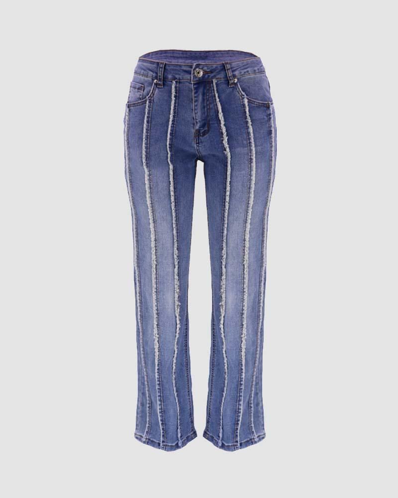Details: Long denim jeans with stripes design