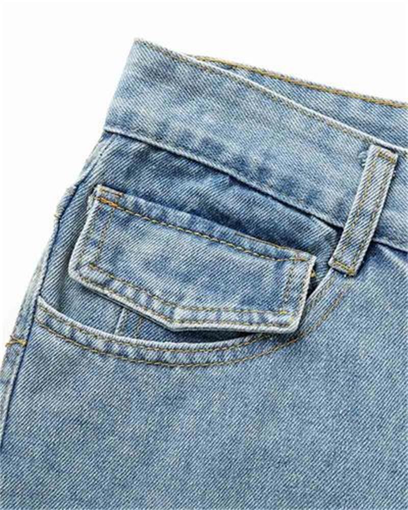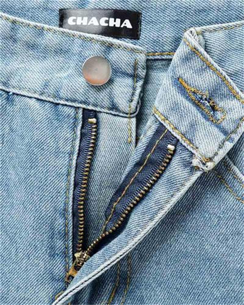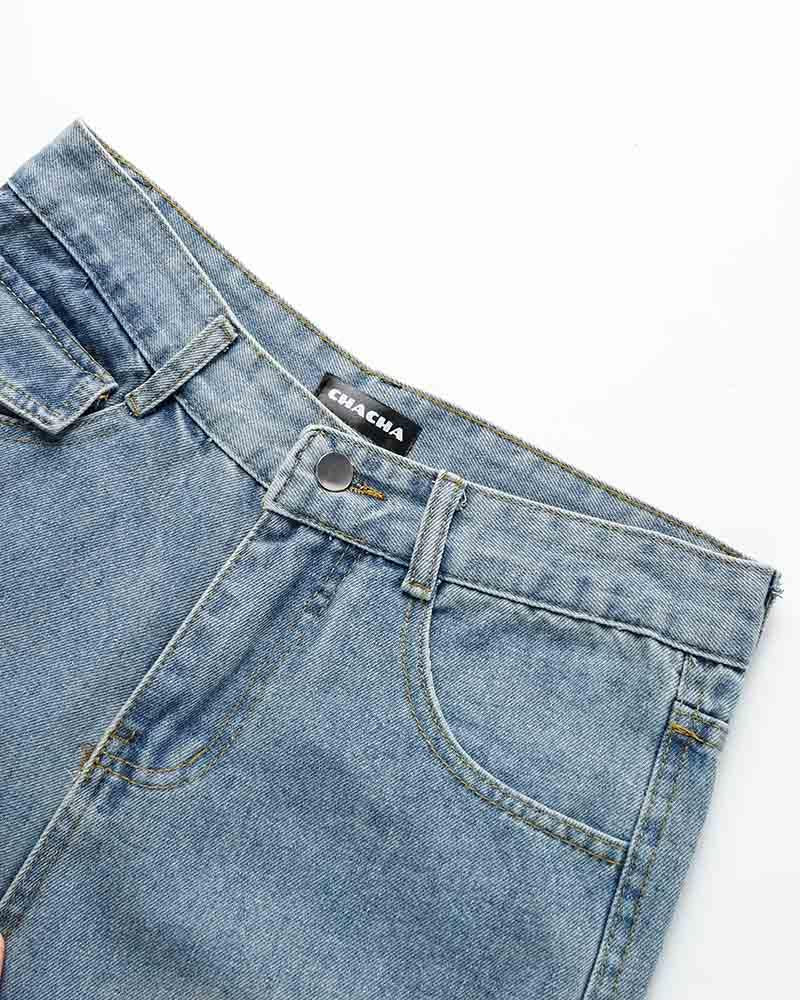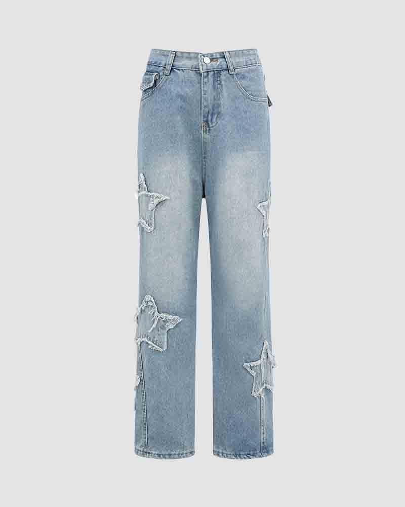 Details: Long denim jeans with star design