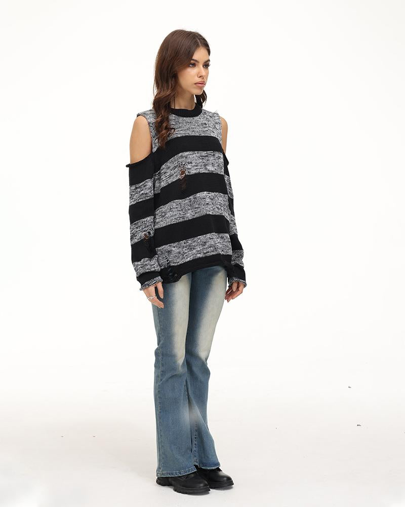 Details: Long denim jeans with knee gradient color pattern design