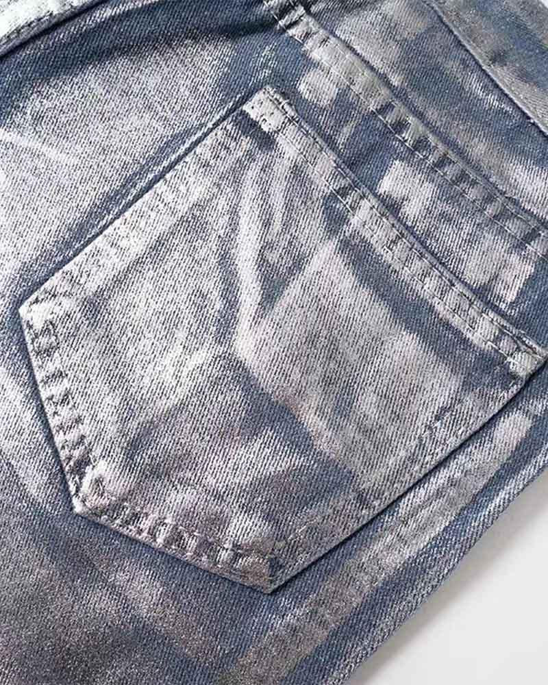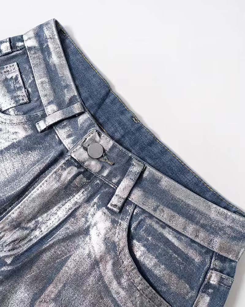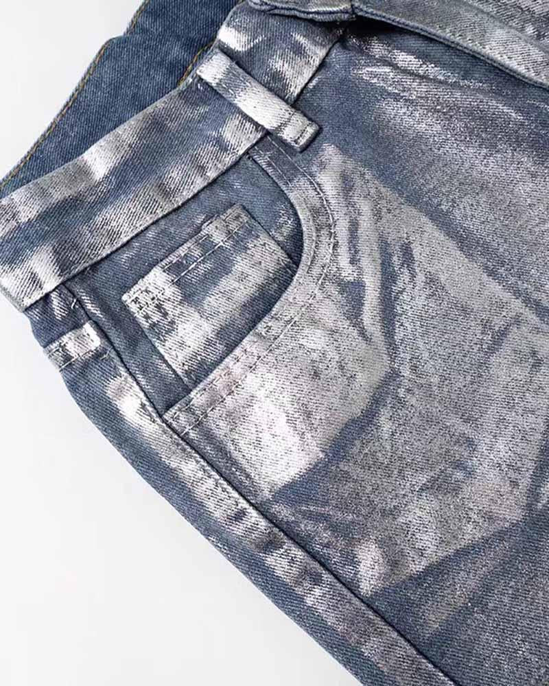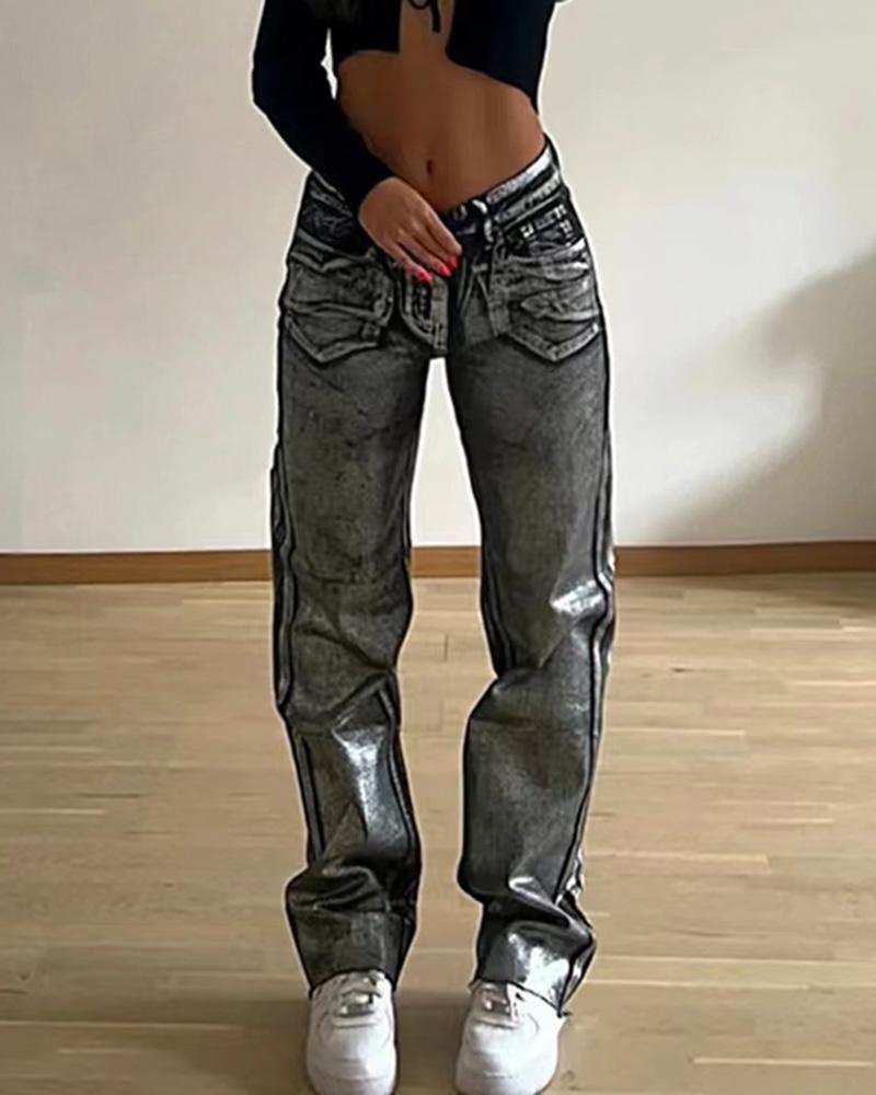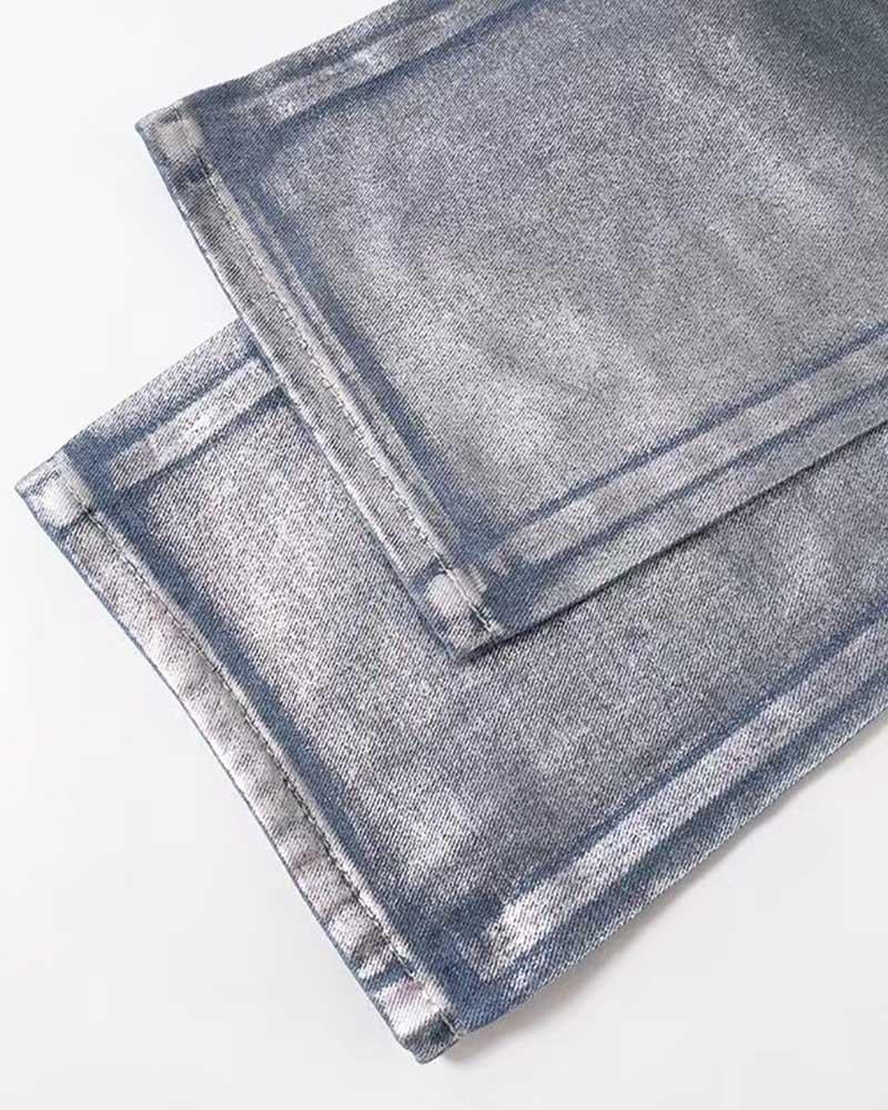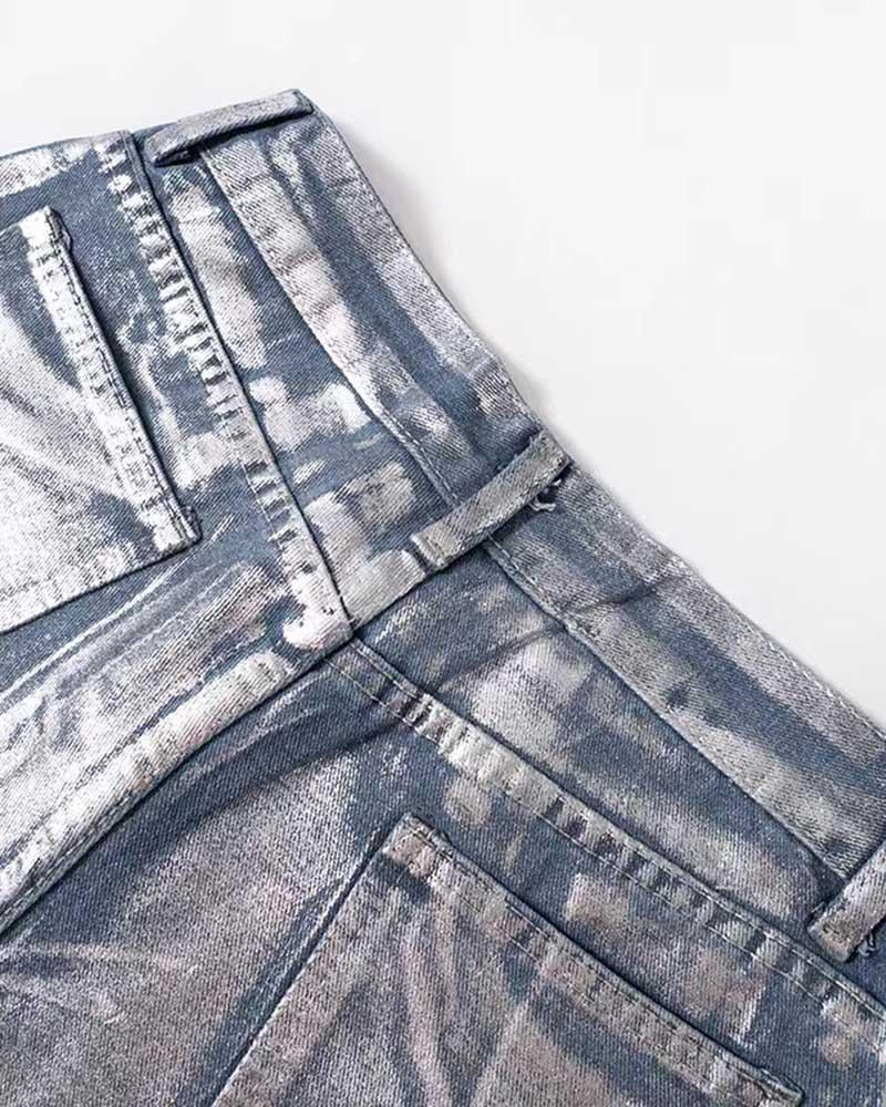 Silver Casual High Waist Denim Jeans