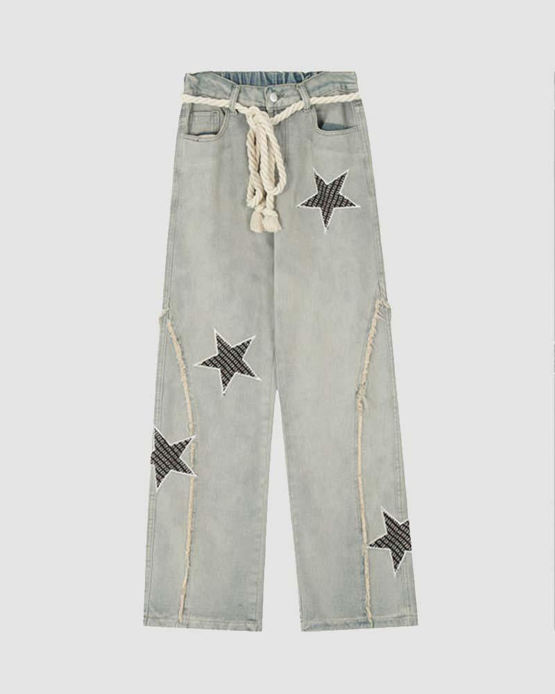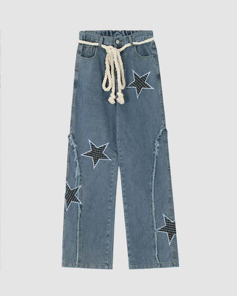 Details: Denim jeans with star design and string details