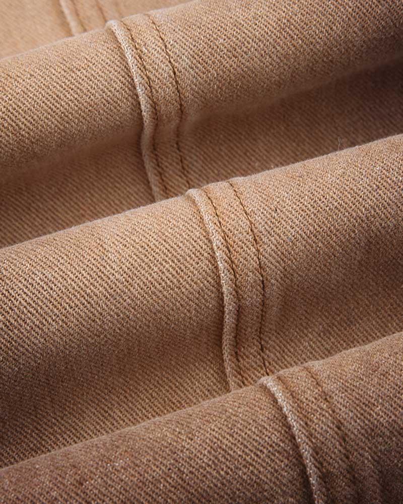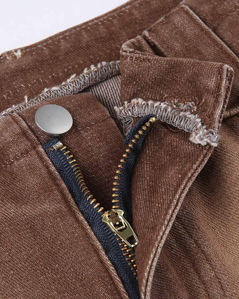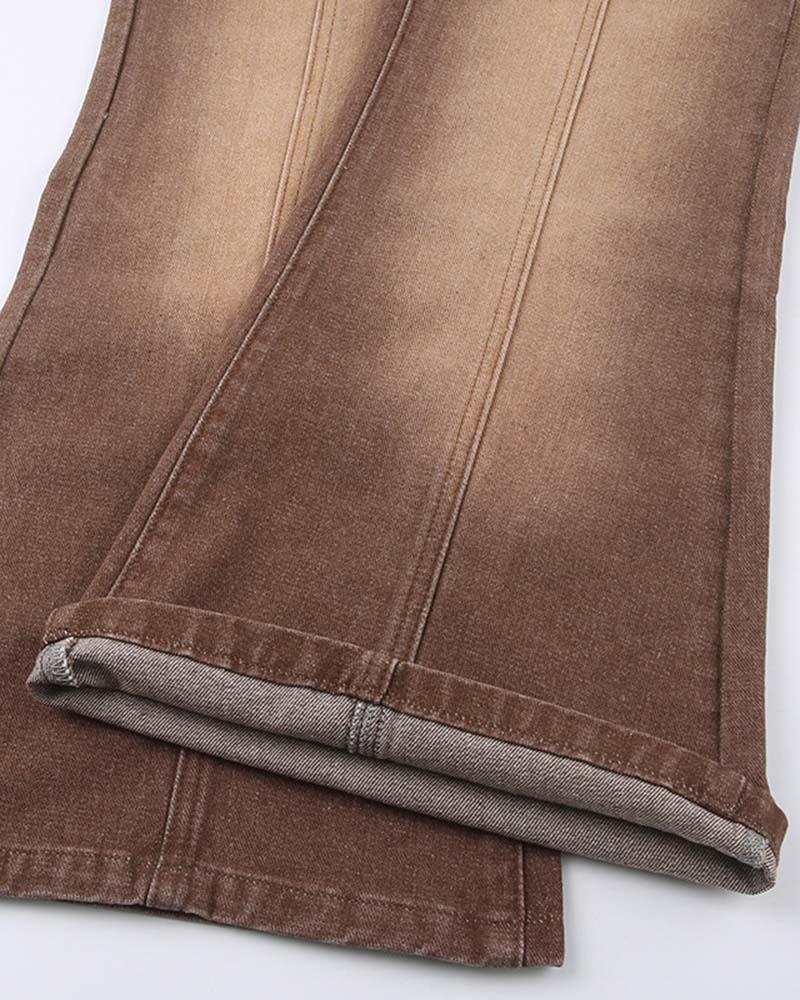 Details: Brown denim jeans with flare design